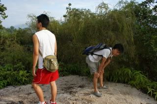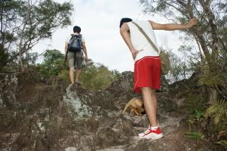woot. did u notice there's a dog with us? lol` the doggie loves us. it is following us to where ever we climbed. but too bad la, when reach to a 90degree spot, it couldn't climb. perhaps a cat can. so we left it down there.wei huang loves the dog.